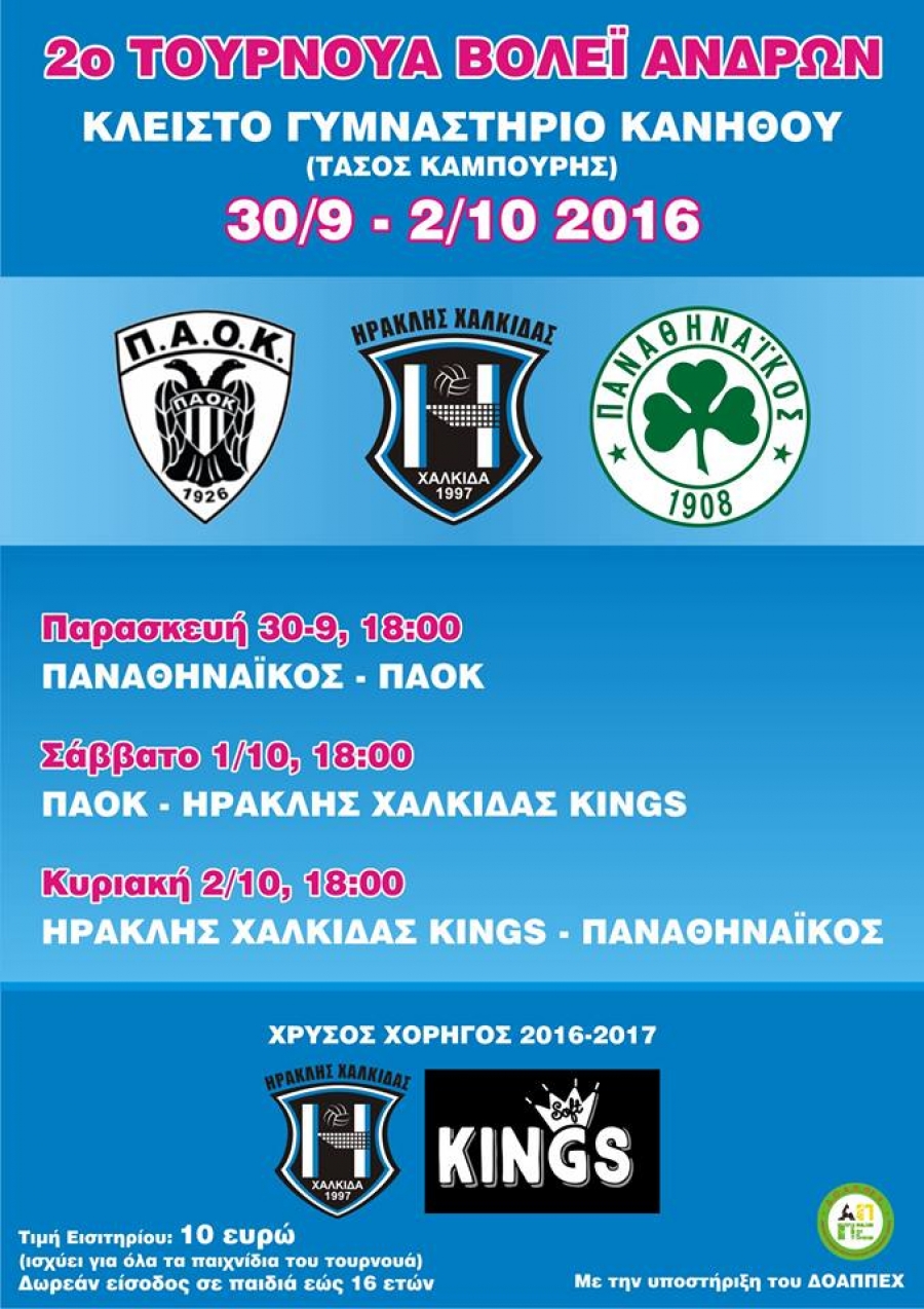 2ο τουρνουά βόλεϊ με τη συμμετοχή των ομάδων ΠΑΟΚ, ΠΑΟ, ΗΡΑΚΛΗ ΧΑΛΚΙΔΑΣ KINGS