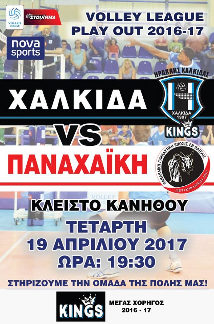 Με μοναδικό στόχο τη νίκη η ομάδα βόλεϊ του ΗΡΑΚΛΗ ΧΑΛΚΙΔΑΣ KINGS αντιμετωπίζει την Τετάρτη (19/4/2017, 19:30) στο Κλειστό Κανήθου την ΠΑΝΑΧΑΪΚΗ σε ένα αγώνα - μία κατηγορία.