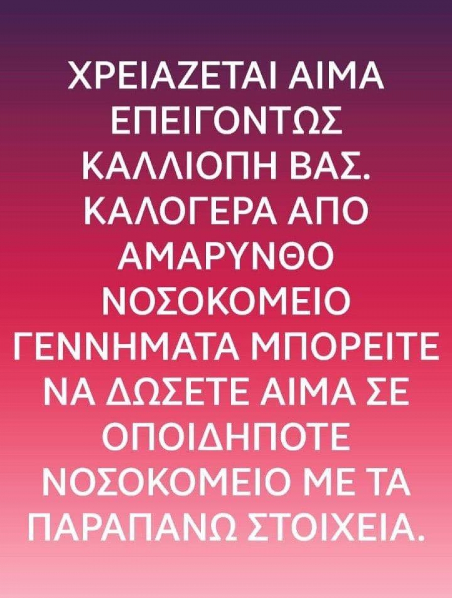 Δίνουμε αίμα για την μικρή Κέλλυ απο την Αμάρυνθο!!!!
